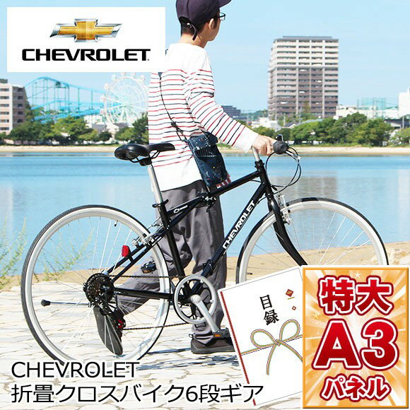 景品 目録 【CHEVROLET 折畳クロスバイク6段ギア】 A3パネル付き オンライン飲み会、リモート飲み会、抽選会、キャンペーン、販促、コンペ、ゴルフコンペ賞品、企業イベント、法人イベントは自由