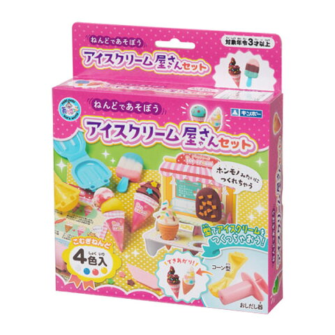 粘土型 粘土 型 アイスクリーム屋さんセット ねんど押し型 こむぎねんど4色入 A-IZ4DF 銀鳥産業 安全 粘土 ねんど スイーツ ねんど型 型 工作 ままごと 自由研究 知育玩具 3歳 4歳 5歳